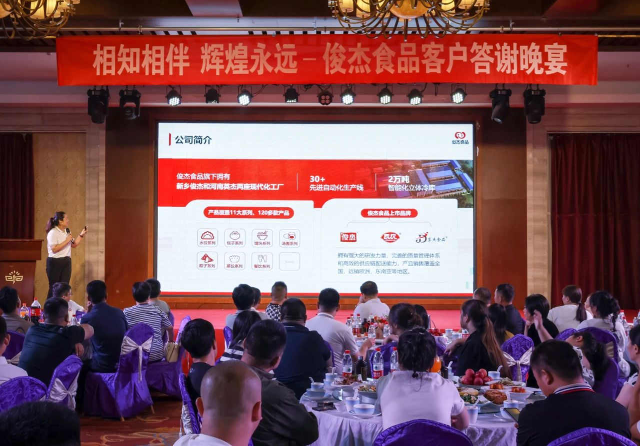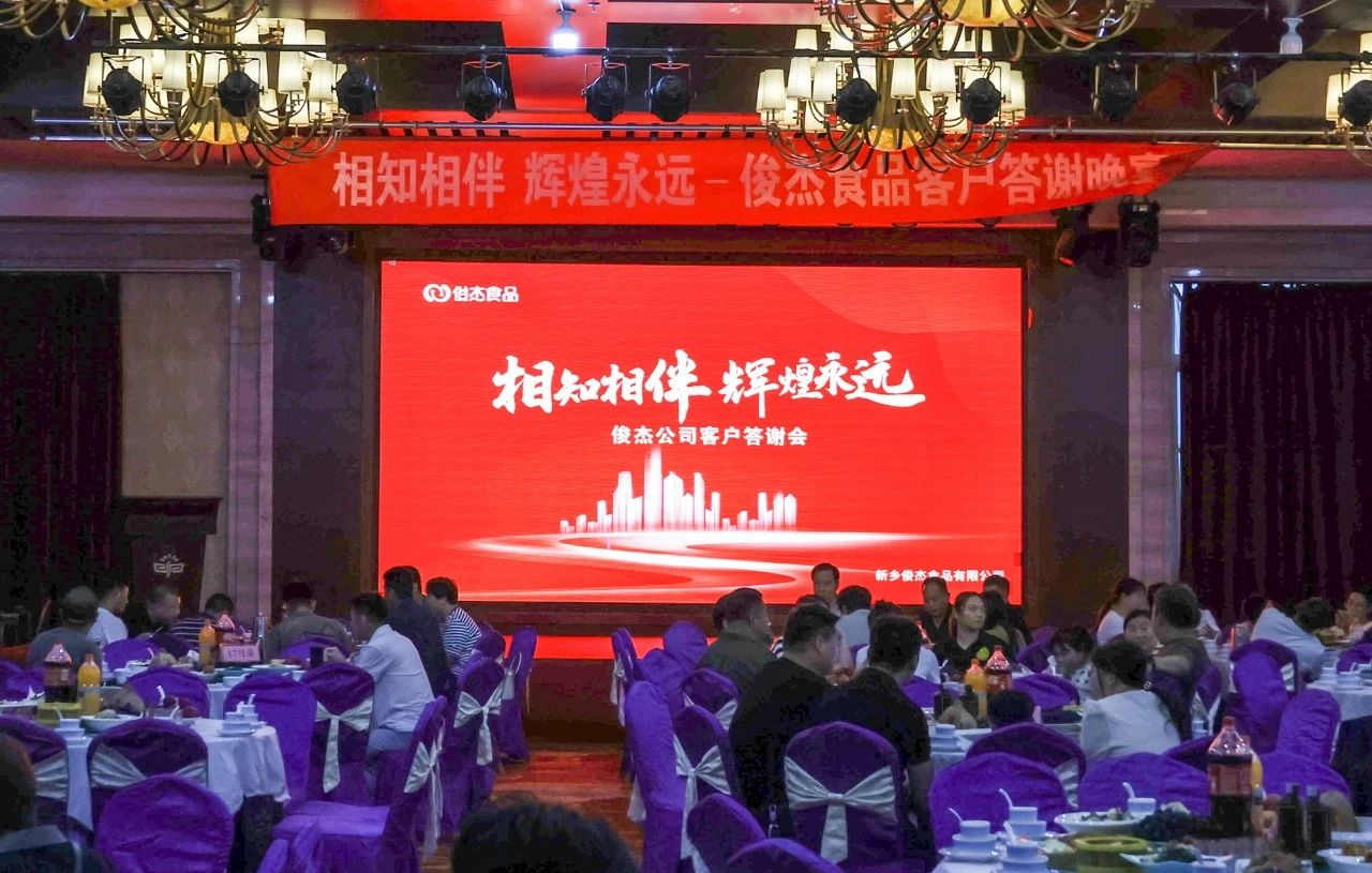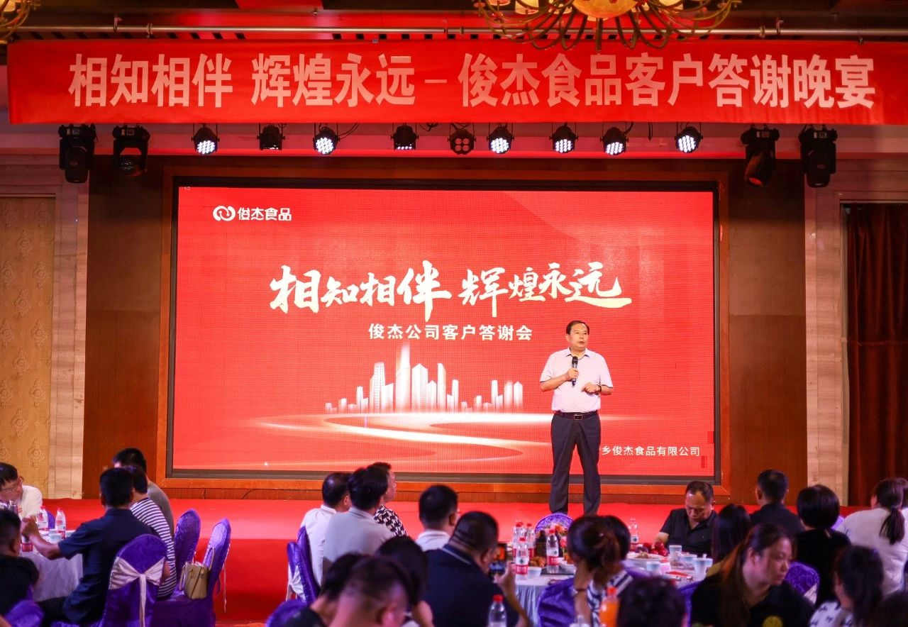 2023年8月7日,“相知相伴,輝煌永遠(yuǎn)”俊杰食品公司客戶答謝宴會(huì)在衛(wèi)輝市中源陽(yáng)光國(guó)際酒店隆重舉辦,宴會(huì)于晚上7:30正式開(kāi)始,新鄉(xiāng)俊杰食品有限公司與經(jīng)銷商代表們齊聚一堂,共敘友情,共謀發(fā)展,大會(huì)取得圓滿成功。